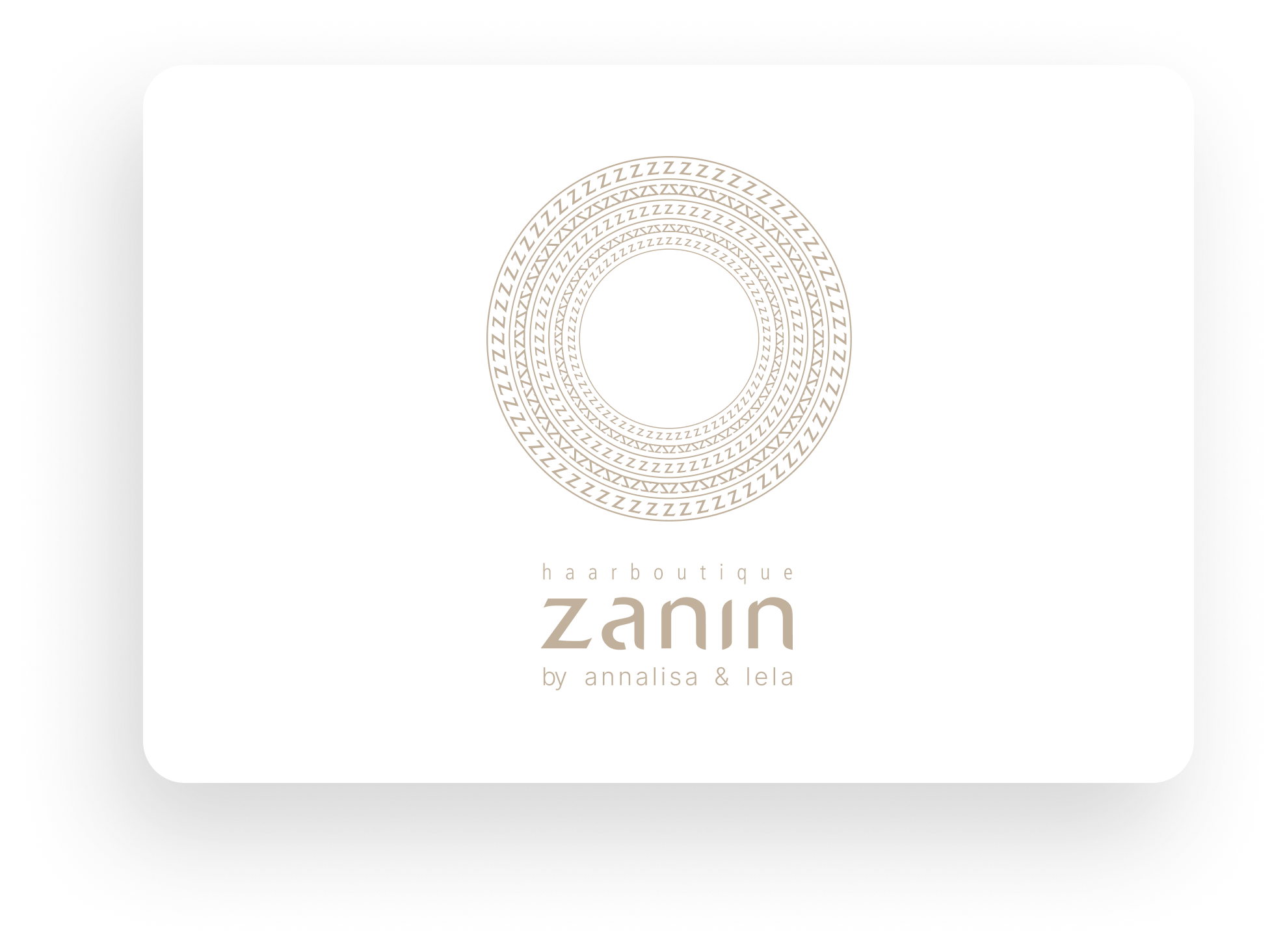 Das zentrierte Kreismuster mit seinen wiederholten „Z“-Formen entstand aus dem Markennamen selbst, ein abstrahiertes Ornament mit identitätsstiftender Funktion: Form folgt Identität. Gleichzeitig verankert es das Logo in einer ruhigen Mitte, was die Haltung des Salons spiegelt.